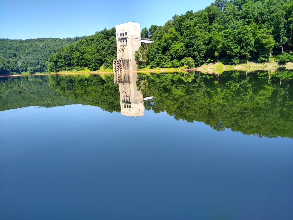 There were a few people camping, but most were not awake when we started fishing, so we only ran the electric. There is a campground beside the outflow of the dam if you do not want to camp on the lake. The lake sites are all primitive. As you can tell from the pictures, the lake is undeveloped. It is a flood control lake and the dam was built in 1940 as a part of the system of dams that control the water flow in the Allegheny River, primarily to keep Pittsburgh from flooding. Thus, there are times when water levels get exceptionally high when the water is being held back, but the summer pool level is pretty constant. No need to worry. The camp sites are all well maintained and the Army Corp has them all cut and ready to go. We will do a two night camp out with the grand kids before the summer is over, but I am going to wait for it to cool down first. It was headed toward 90 degrees the day we were there, so about 10:00 we called it a day and got off the lake before it was too hot and the power boat traffic started.