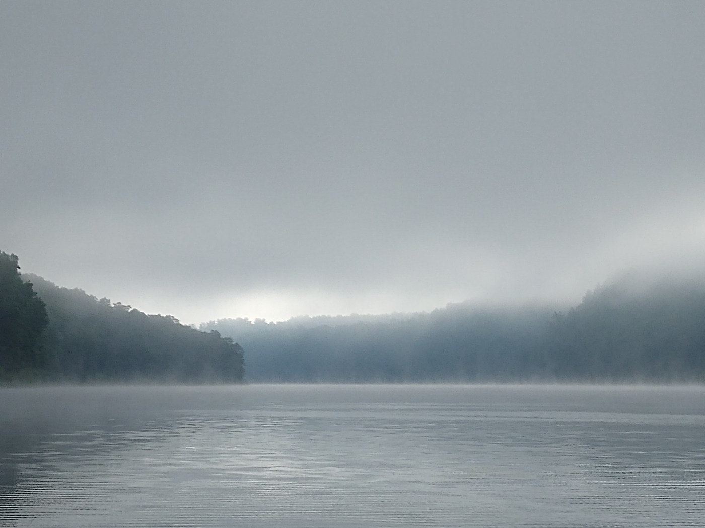 It was an extremely foggy morning on the lake, which made it an extremely picturesque morning on the lake. We fished three of my favorite spots, spots that have produced fish in the past. All three of us cast continuously for about 3 hours, but the muskies were not playing, as is the case so many days with them. The lake was oddly tinged with mud. I thought that to be unusual, since it has been sometime since we had any rain at all, but I don’t think that had anything to do with our lack of success.